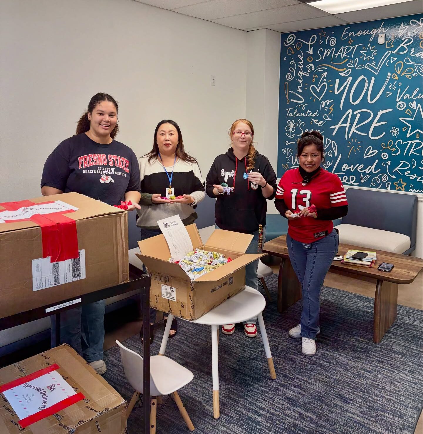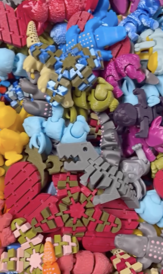 Many of the toys are articulated designs that move when handled, making them popular as sensory items. Teachers often use them in classrooms to help students focus or relieve stress. What’s more, the toys are handed out for free to children in local schools, shelters, and foster care programs. It’s all part of the group’s mission to help ensure that children in underserved communities have access to simple toys and opportunities to play.